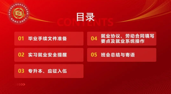 此次班会经过精心策划筹备,紧扣2026届毕业生即将结束岗位实习、迈入求职择业关键阶段的实际需求,围绕岗位实习收尾、专升本备考、应征入伍、就业创业准备四大核心模块,开展全方位、针对性指导服务,助力毕业生平稳衔接实习与就业,明确发展方向。