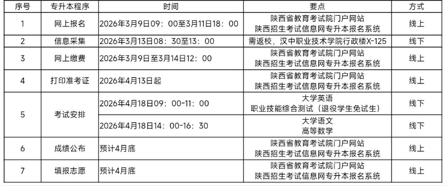 汉中职业技术学院2026年陕西省普通高等学校专升本招生考试工作方案.pdf